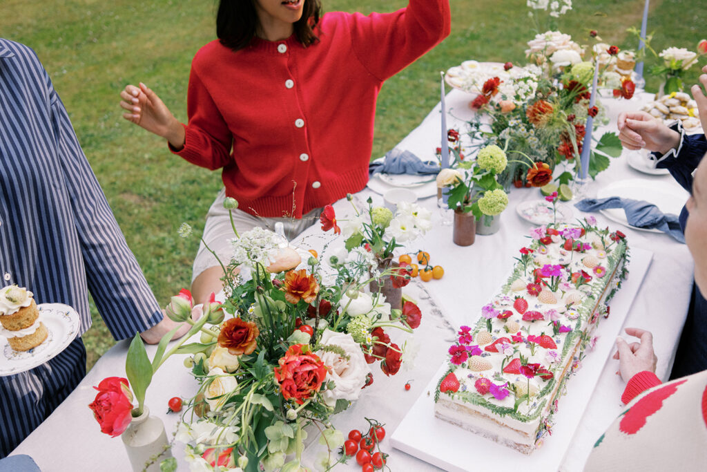 For this campaign, the brand’s team imagined a whimsical garden celebration and an alfresco table that felt laid back, yet luxurious. Our role was to translate that vision into flowers: garden-inspired arrangements that felt freshly gathered and beautifully organic, whilst still reflecting the sophistication of the brand.